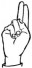 На ћирилици написано КОСТАДИН БАТОЋАНИН састоји се из 17 слова [?]. Исписано ћириличном једноручном азбуком за глувонеме: